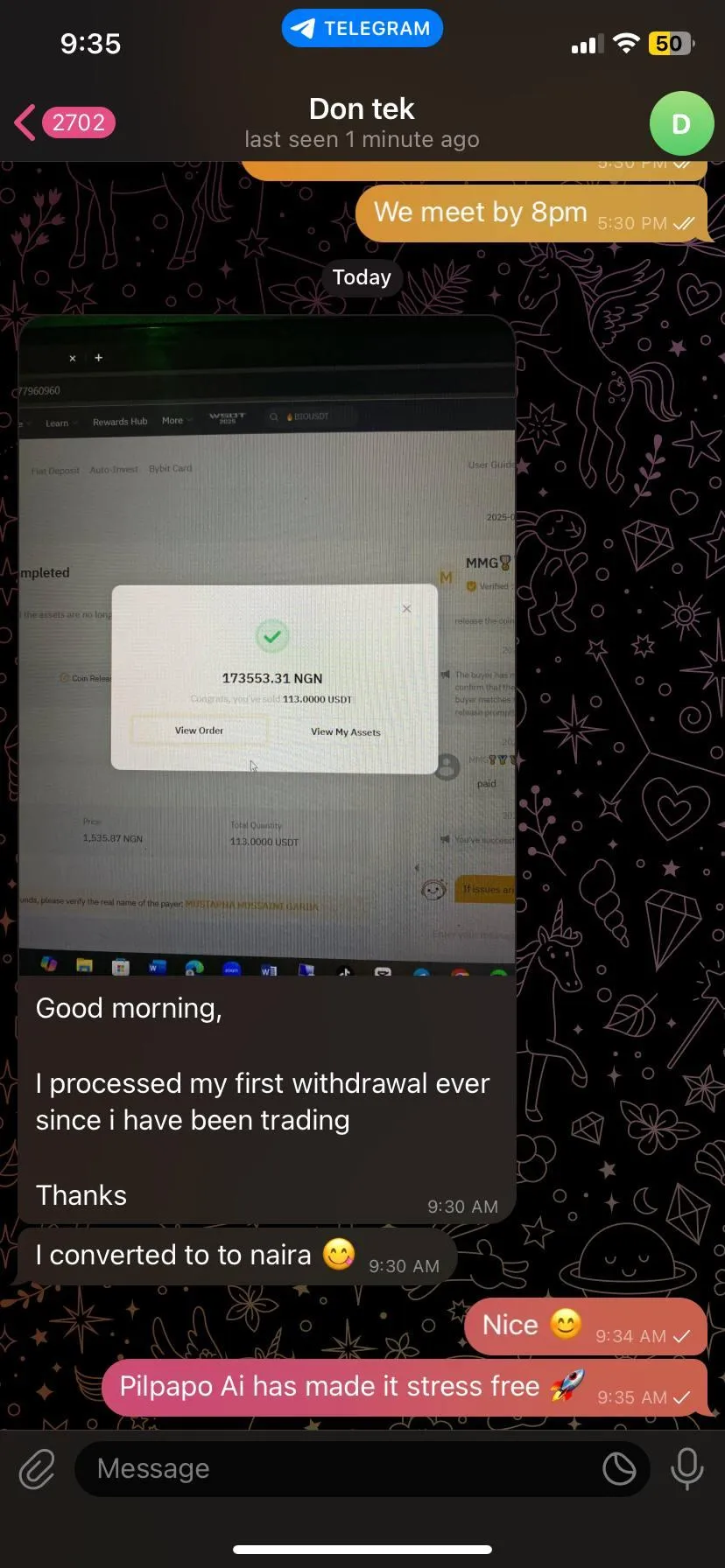 Click the button below to start trading with signals with 95% accuracy of making you first $1000. Now that it’s still free to make use of Pilpapo Ai.
